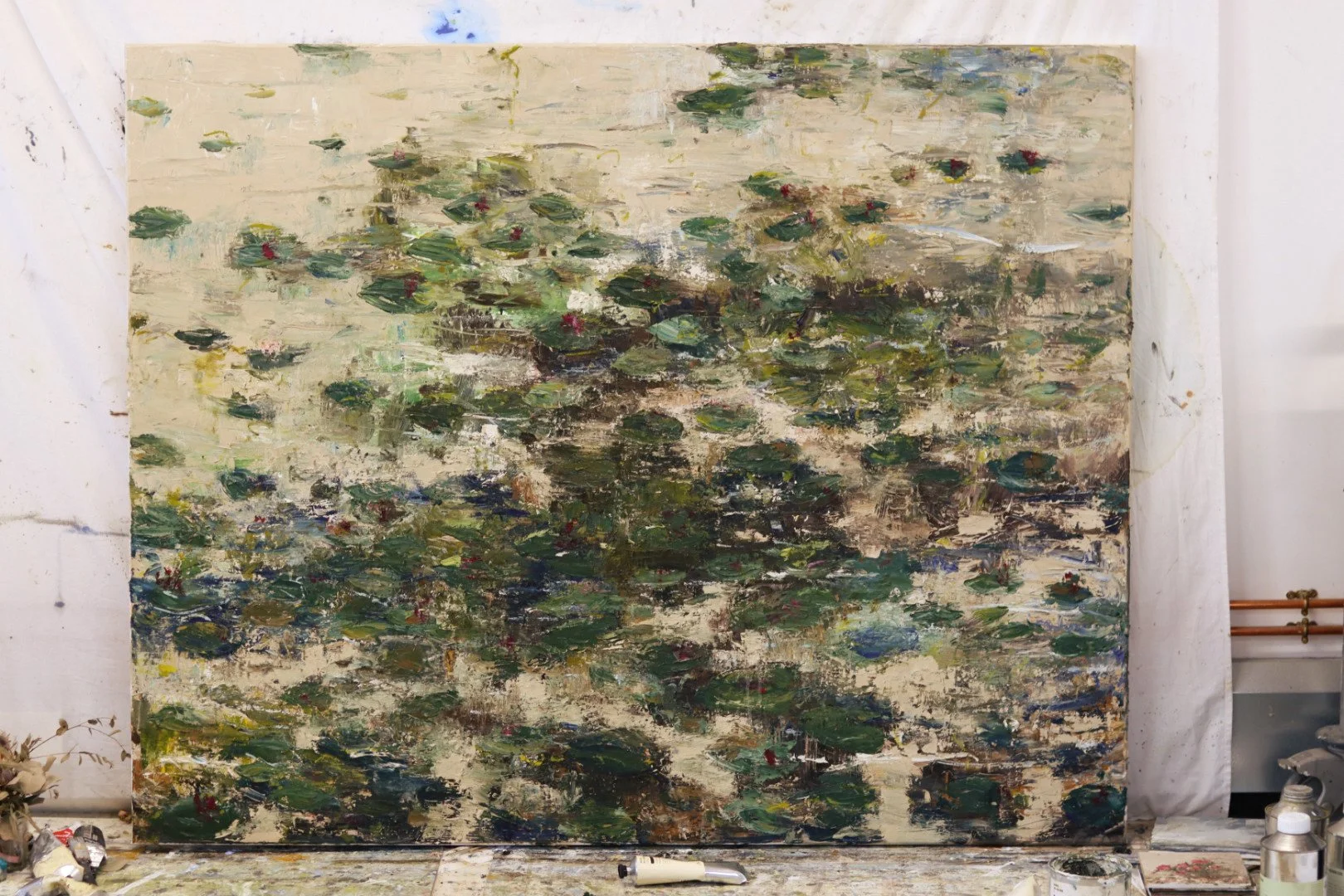 This painting is not about waterlilies in a literal sense. It is about atmosphere, accumulation, and the quiet movement of things beneath the surface. It holds space for ambiguity, and I hope it offers something different each time it is encountered. A place to pause. A place to look without needing to arrive anywhere in particular.