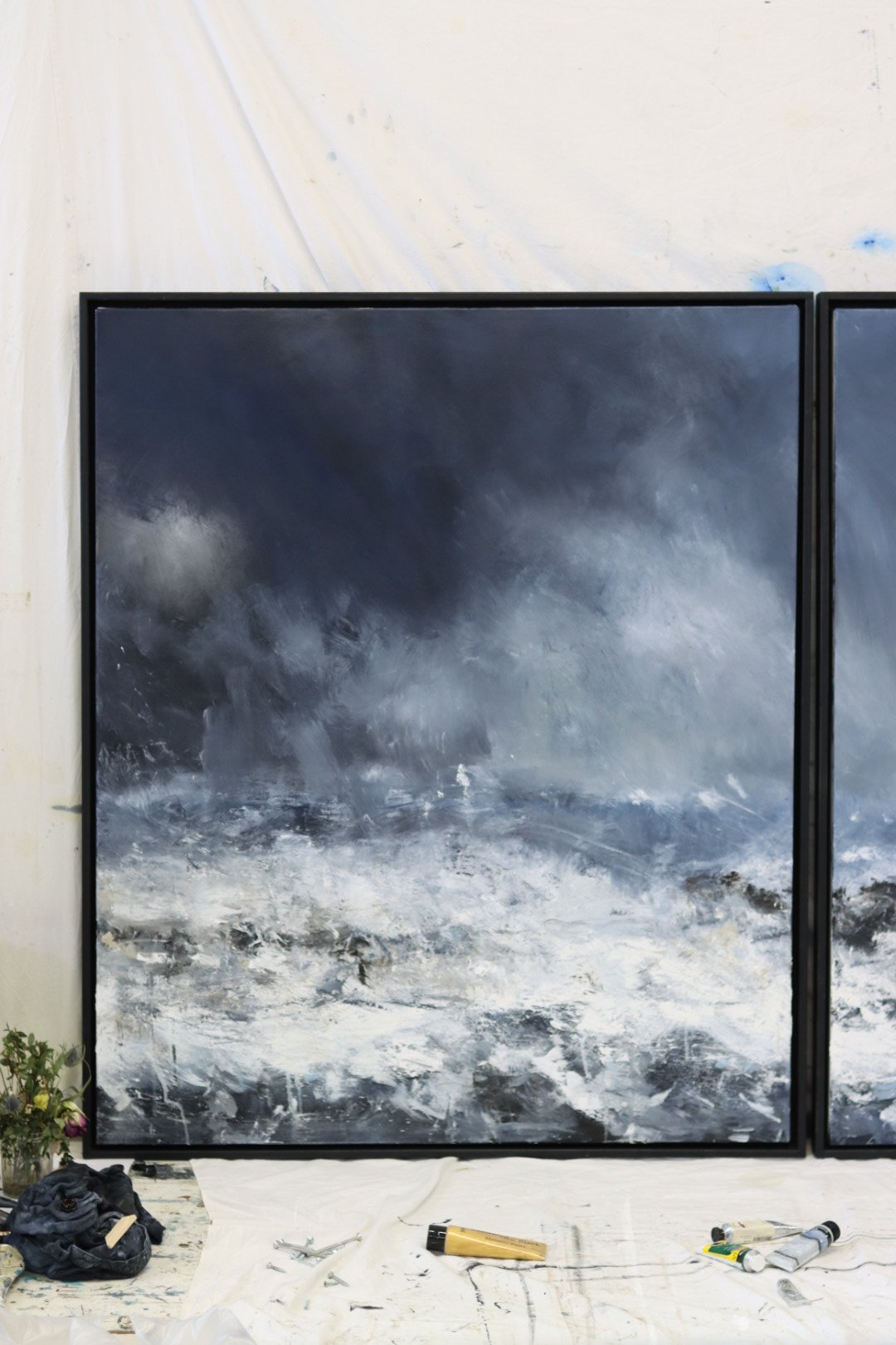 The studio changes when a large painting is in progress. The canvas occupies the room differently. It becomes less like an object and more like a presence. You find yourself adjusting your position constantly, walking around it, considering it from unexpected angles. The painting becomes something you inhabit rather than something you simply make.